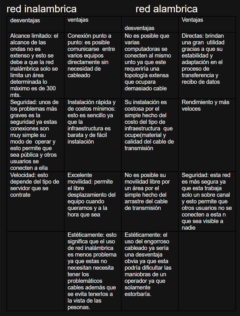 podemos decir que las redes alámabricas son todas aquellas que requieren de una conexión por medio físico (cables de datos cables con hilos conductores [CAT5] ) entre los diferentes dispositivos (ordenadores, impresoras,etc.)